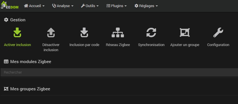 Pour inclure cet équipement connecté Zigbee il faudra aller dans Plugin>Protocole domotique>JeeZigbee.
