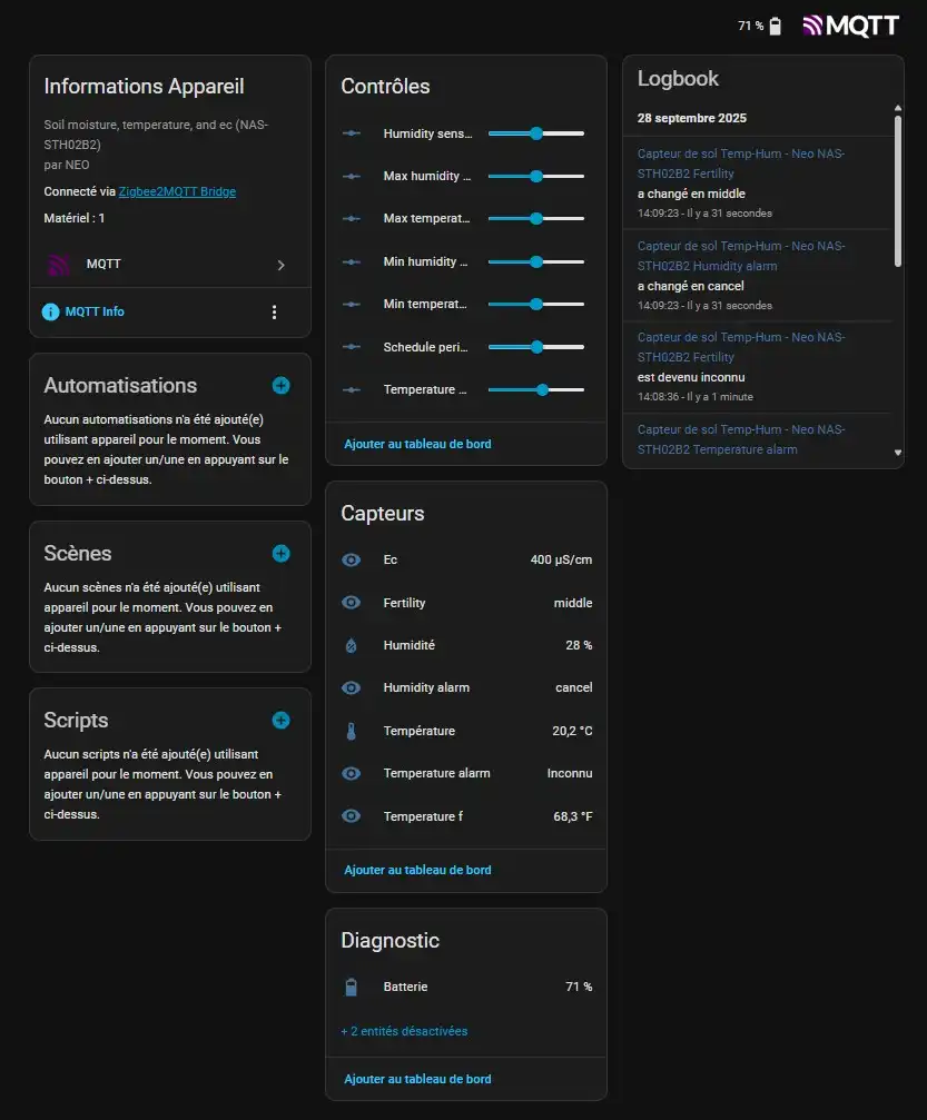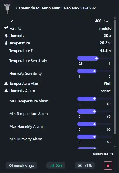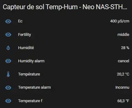 Le capteur de sol est exploitable sur Home Assistant, voici un exemple d’utilisation sur le tableau de bord