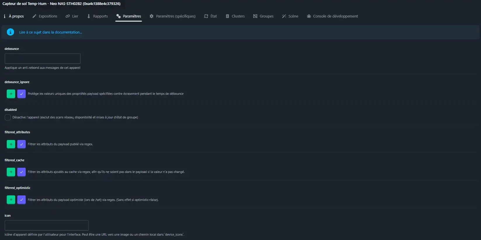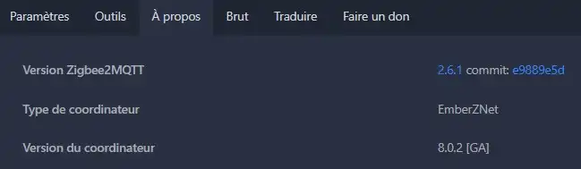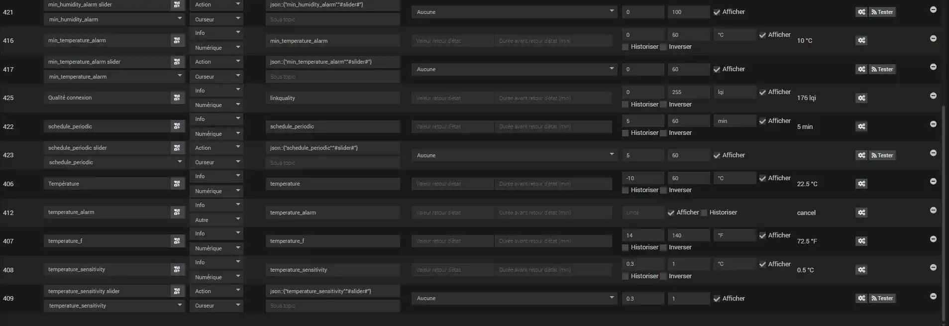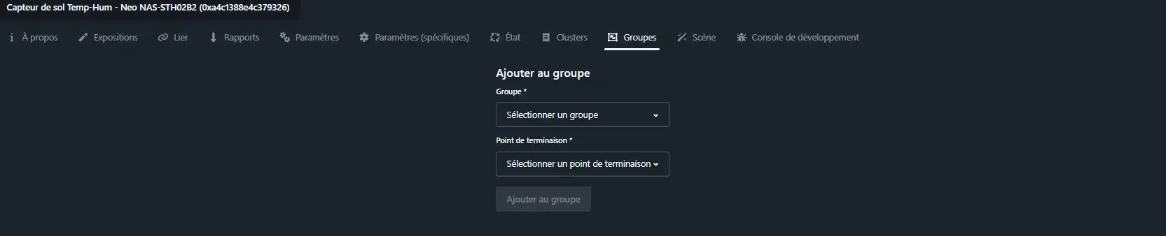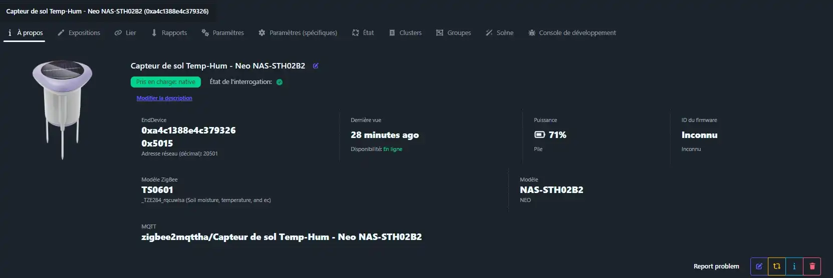L’équipement apparait comme ci-dessous sur le tableau de bord Zigbee2MQTT.