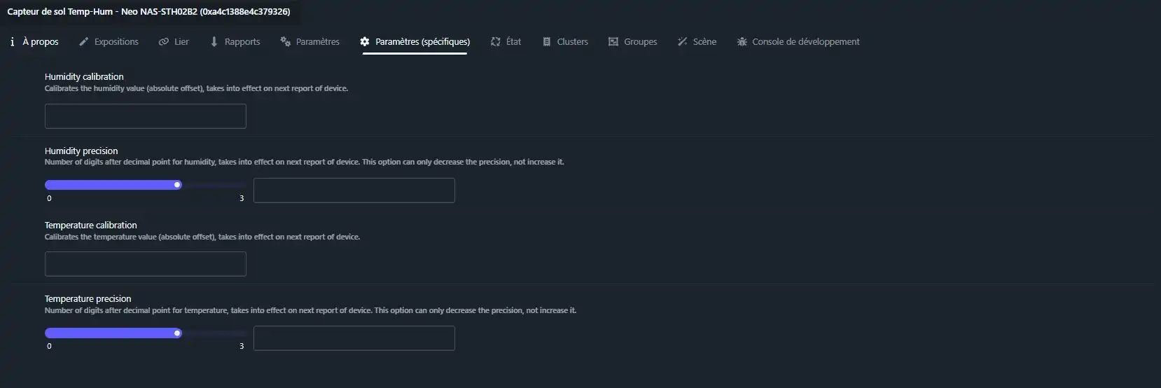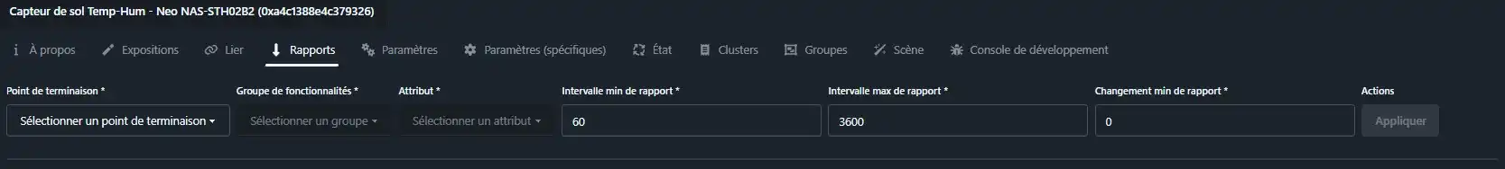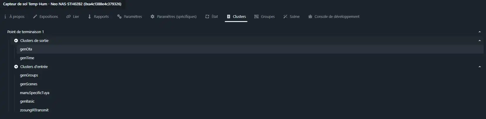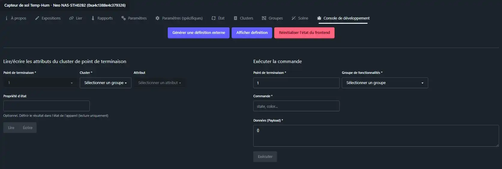 L’équipement apparait comme ci-dessous sur le tableau de bord Zigbee2MQTT.