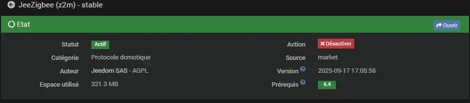 Dans cette présentation, nous avons utilisé une box Jeedom Luna 4G avec le plugin JeeZigbee officiel Jeedom utilisant Zigbee2MQTT. L’intégration fonctionne également avec la box Jeedom ATLAS version Zigbee.