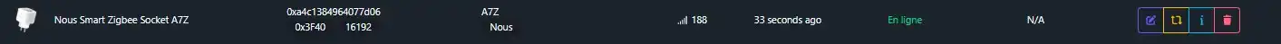 L’équipement est disponible dans la zone « Appareils », il est possible de renommer simplement en cliquant sur l’icône bleu, reconfigurer avec l’icône orange et le supprimer avec l’icône rouge.