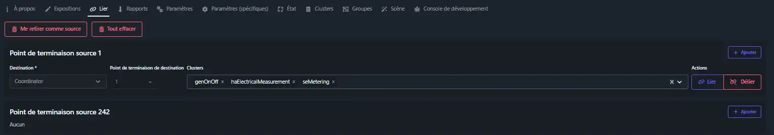 L’onglet « Lier » permettant de lier / délier l’équipement (binding).
