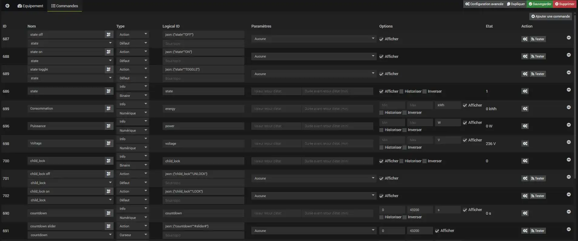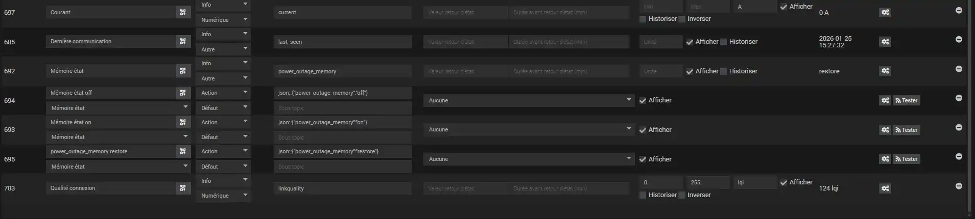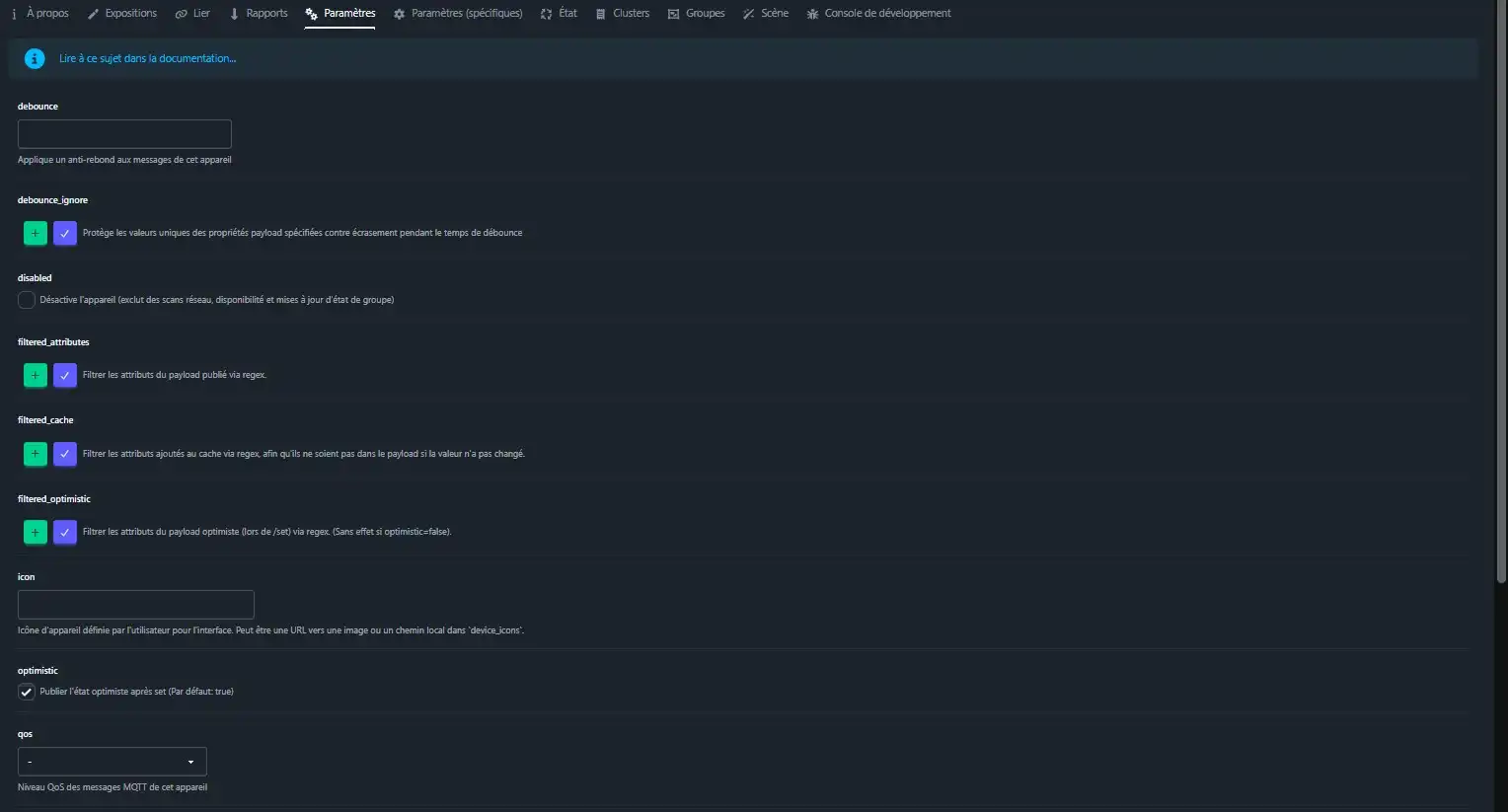 L’équipement est intégré dans la partie MQTT, nous la retrouvons sous cette forme