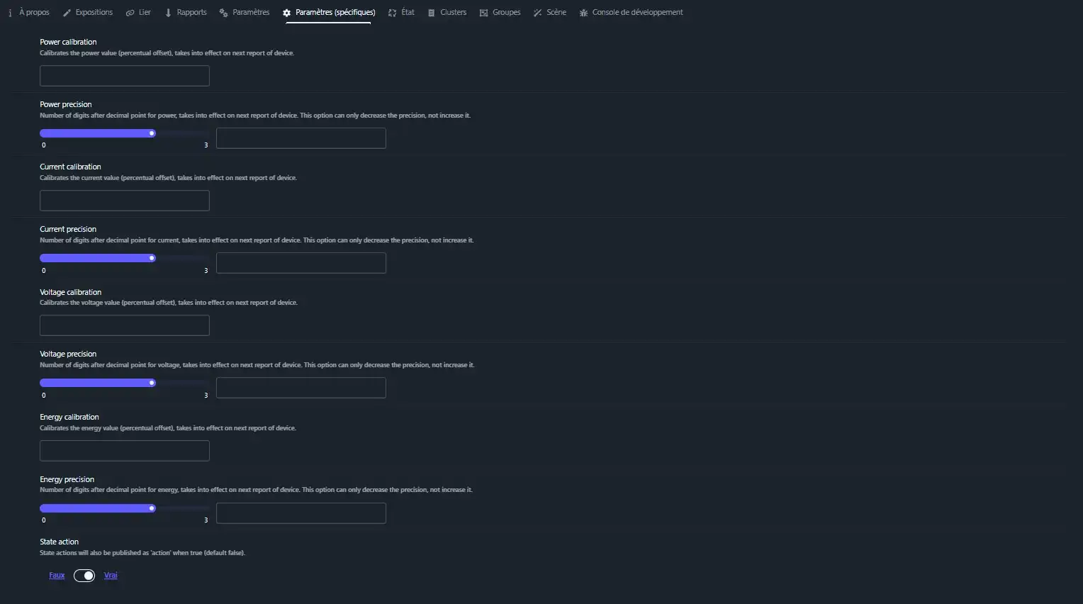 L’onglet « Paramètres spécifiques » pour gérer les décalages des valeurs et/ou états.