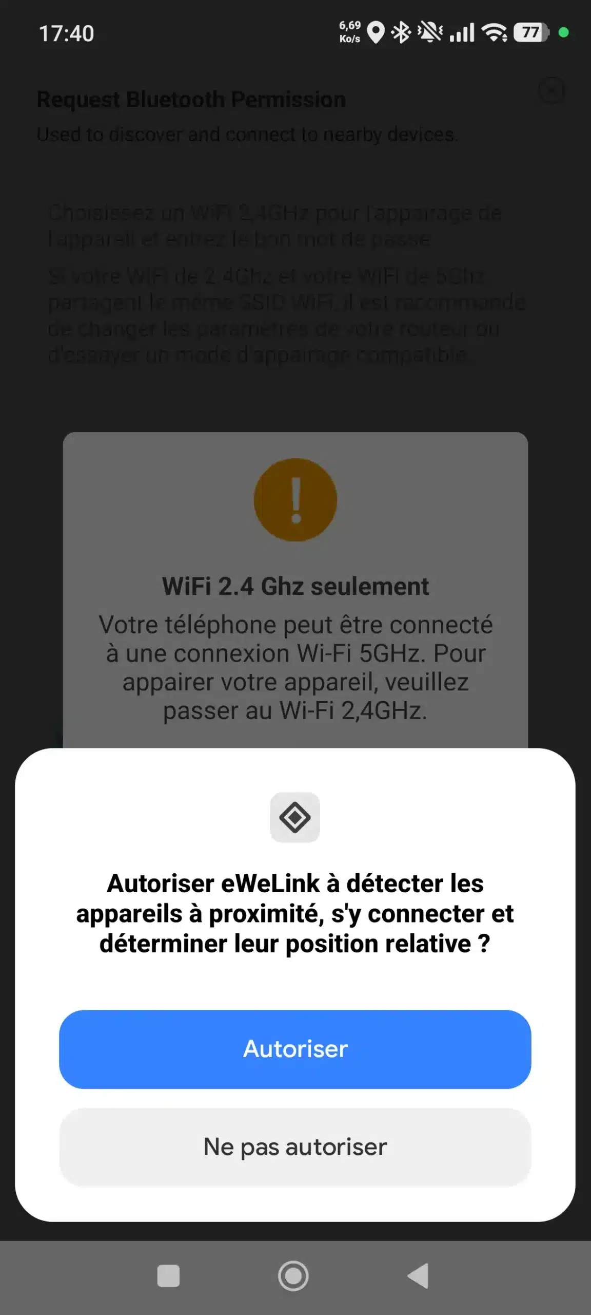 Cliquez ensuite sur le bouton « + » en haut a droite pour ajouter un nouvel appareil. L’application demandera l’utilisation du WiFi et d’activer la localisation de votre smartphone
