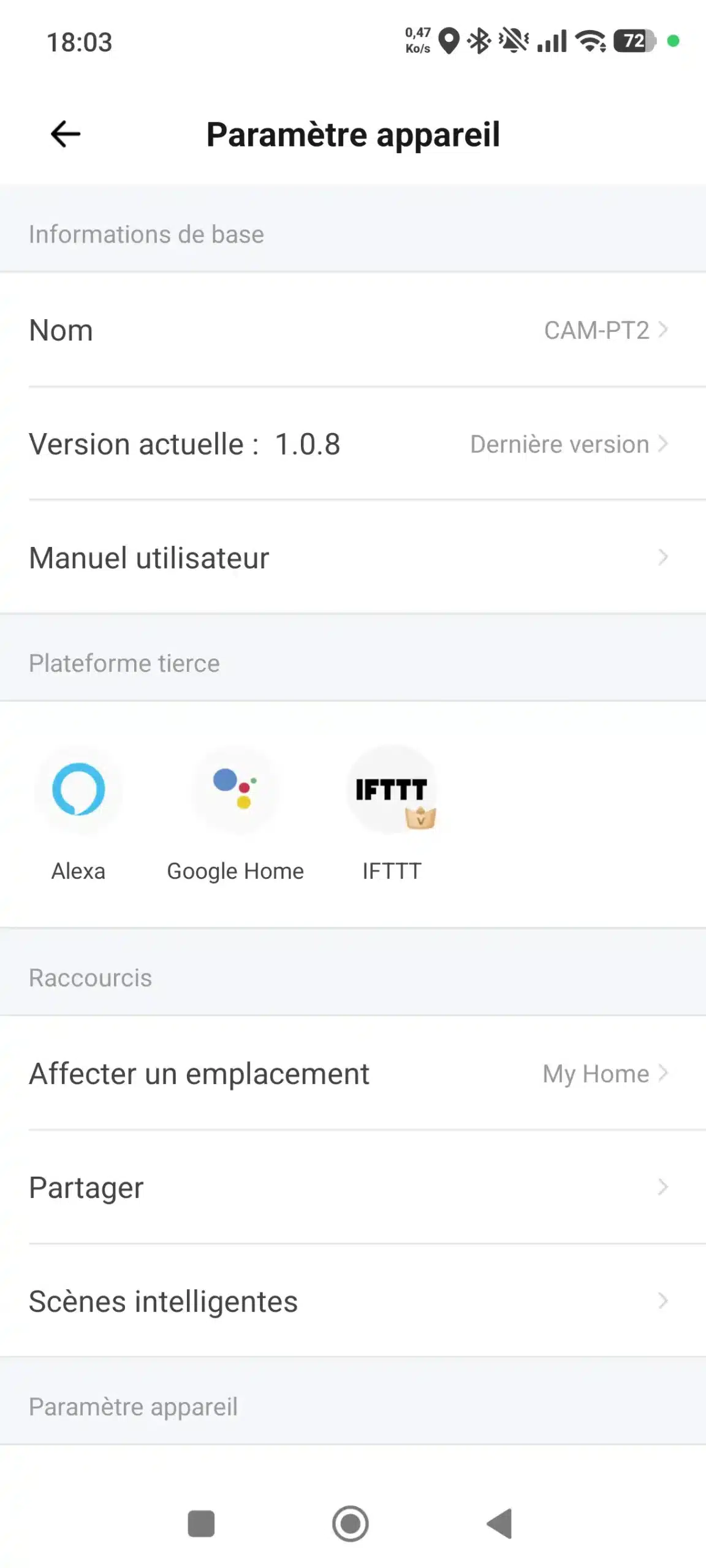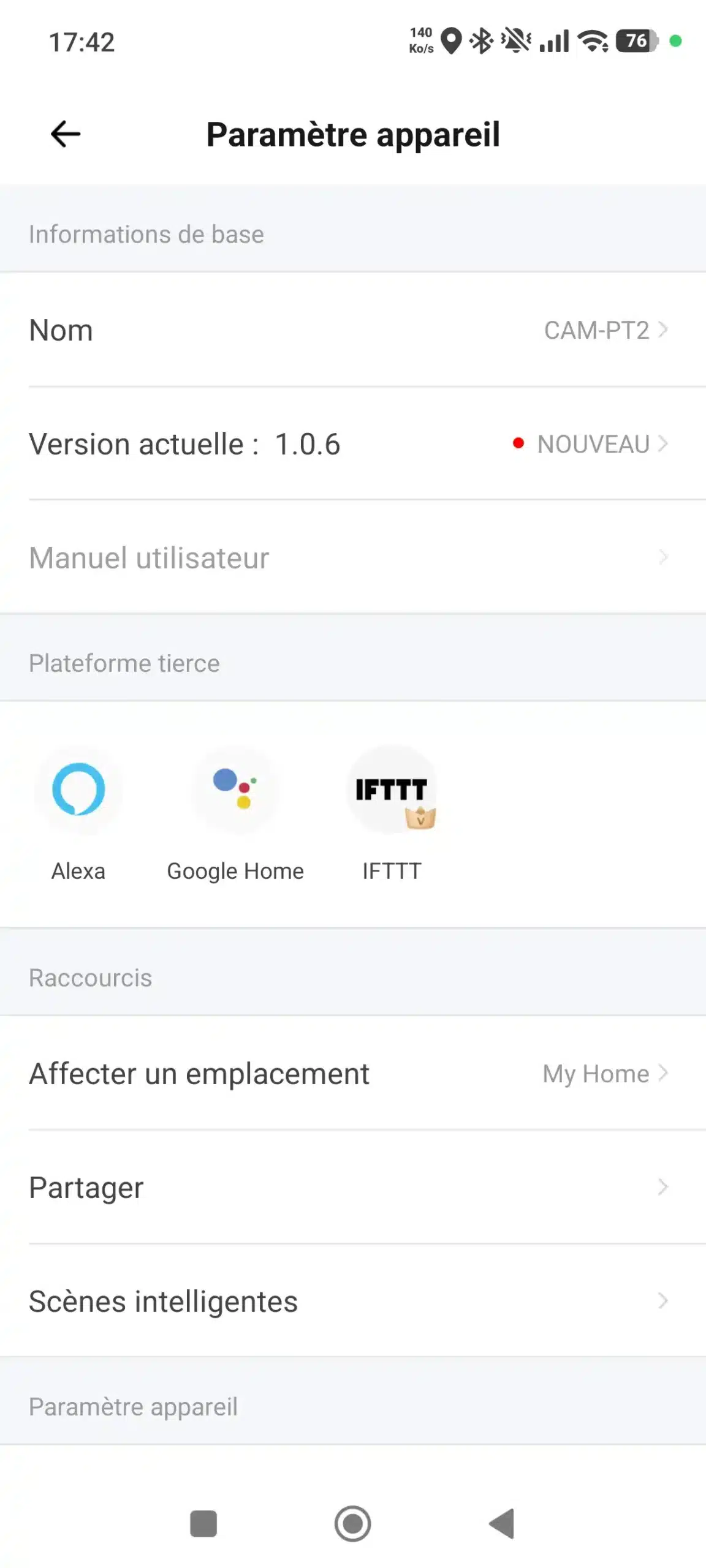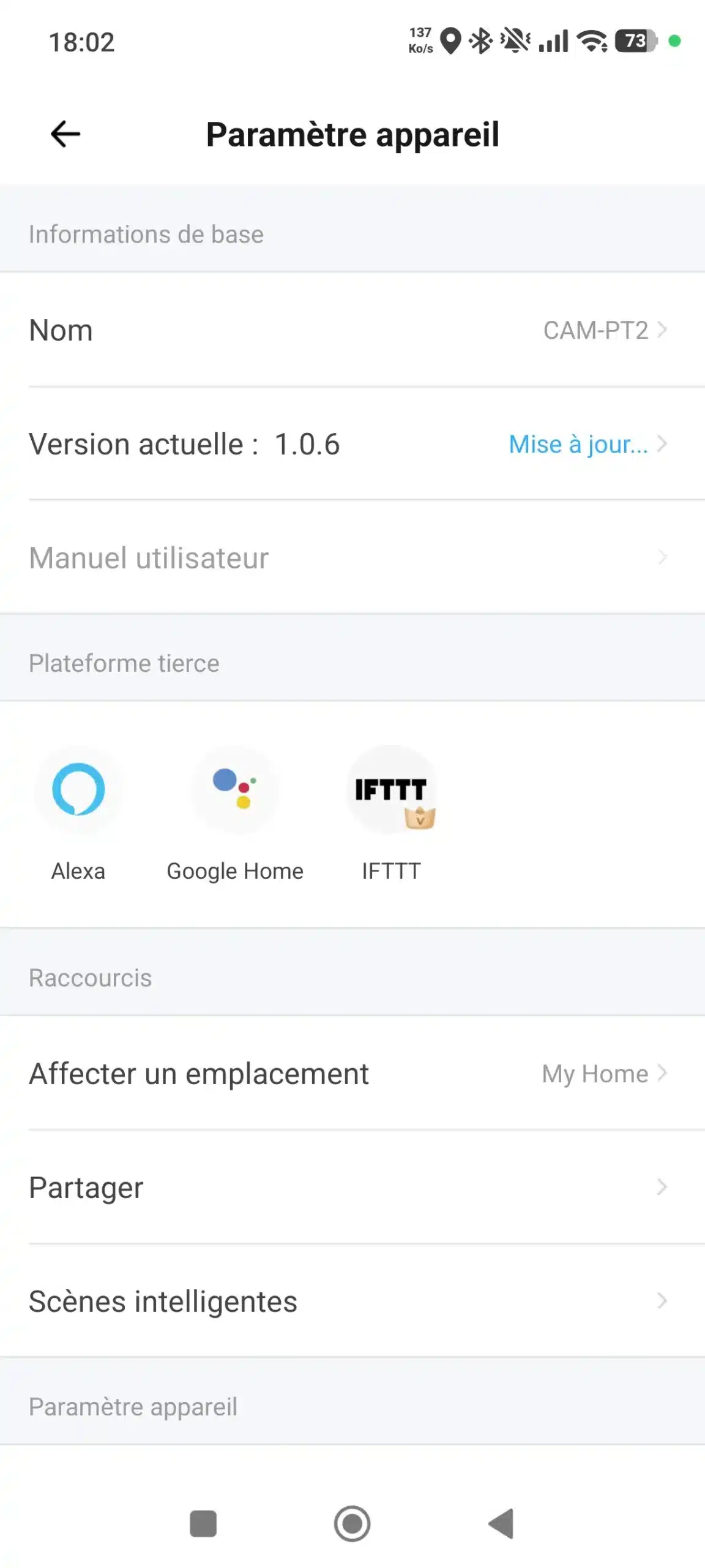 Dans les paramètres vous pouvez renommer la caméra et donner son emplacement dans votre domicile. Vous pouvez partager son utilisation avec vos proches.