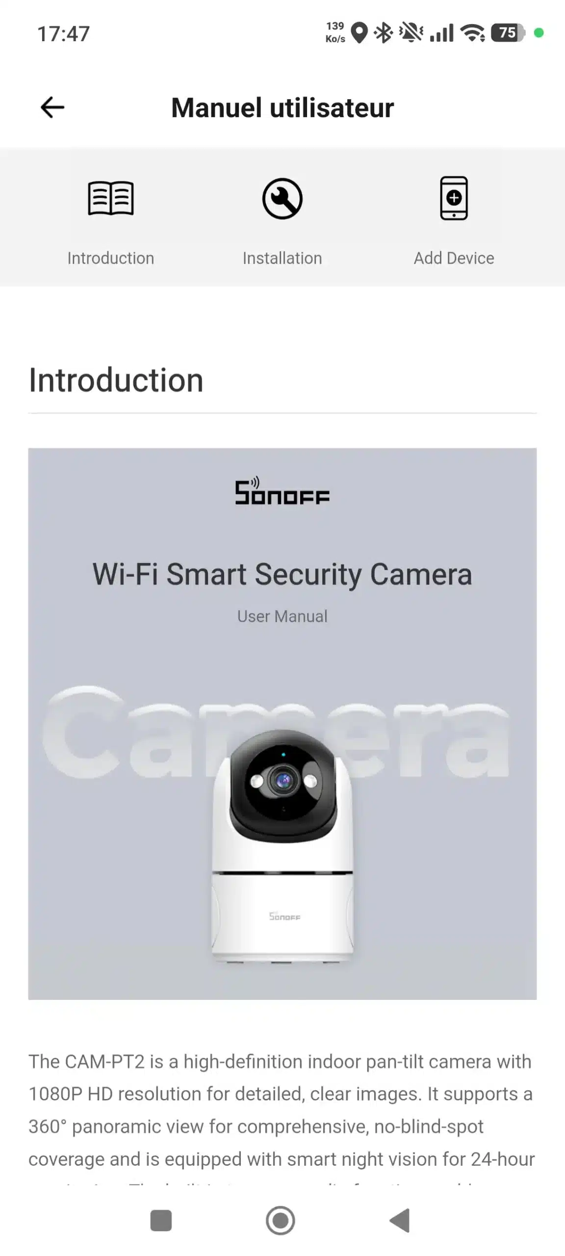 Utilisation de la camera 360° Sonoff Pan-tilt2 avec l’application eWeLink