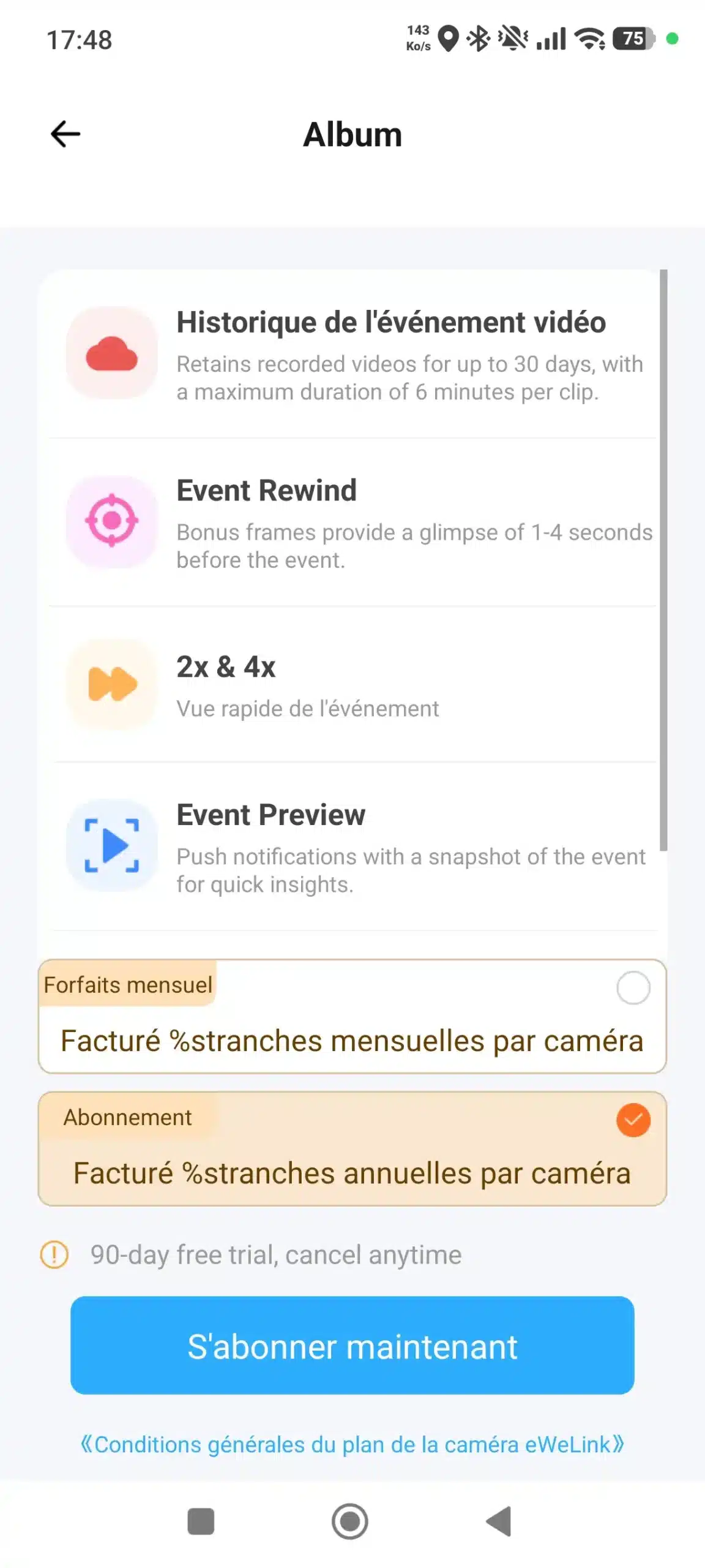Concernant les enregistrements des images et vidéos sur un Cloud, ceux-ci sont disponibles dans la partie Album. Sonoff propose quelques formules d’abonnement.
