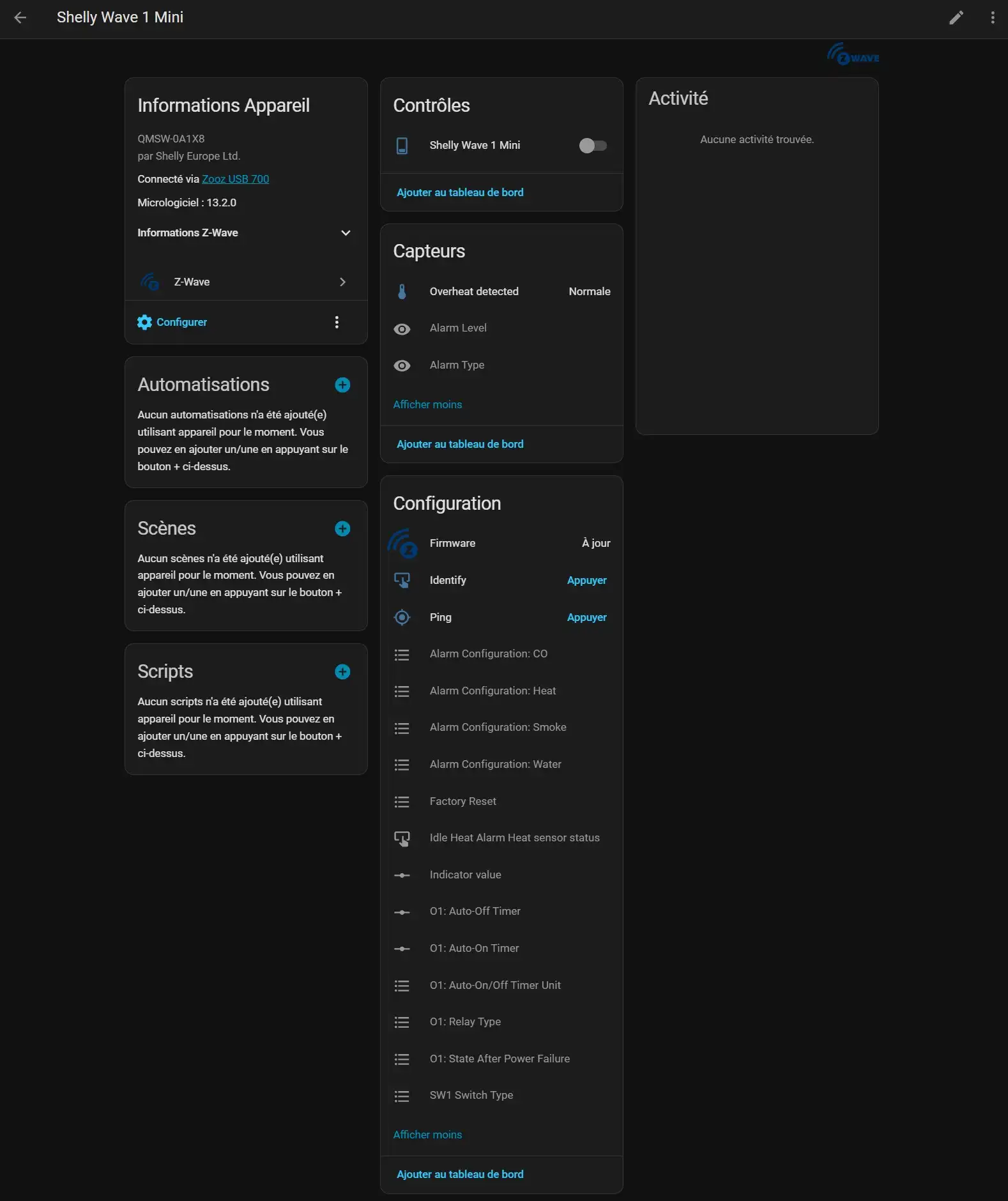 Nous partons du principe que votre système est équipé d’un dongle Z-wave et que le Plugin Z-Wave JS est installé, paramétré et fonctionnel.