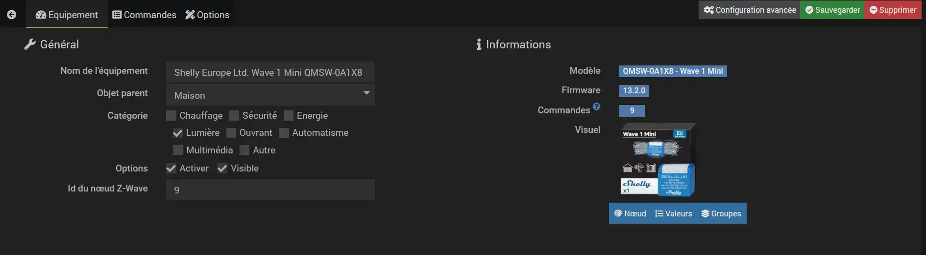 L’équipement est ajouté au système, attendez quelques secondes afin qu’il puisse remonter l’ensemble de ses informations