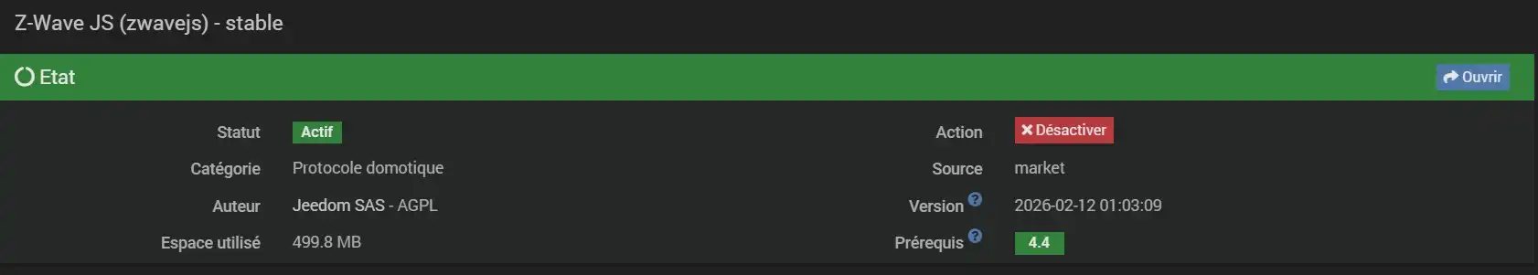 Notre plugin est en version stable du 12-02-2026 et la version de ZwaveJS UI en 11.6.1